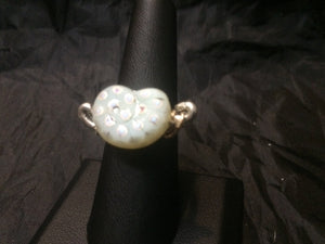 Lampworked Glass Cardioid Silver Plated Copper Wire Wrapped Ring