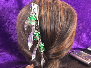 Green Glass Bead and Drop Leaves Dangly Jumbo Steel Hair Clip